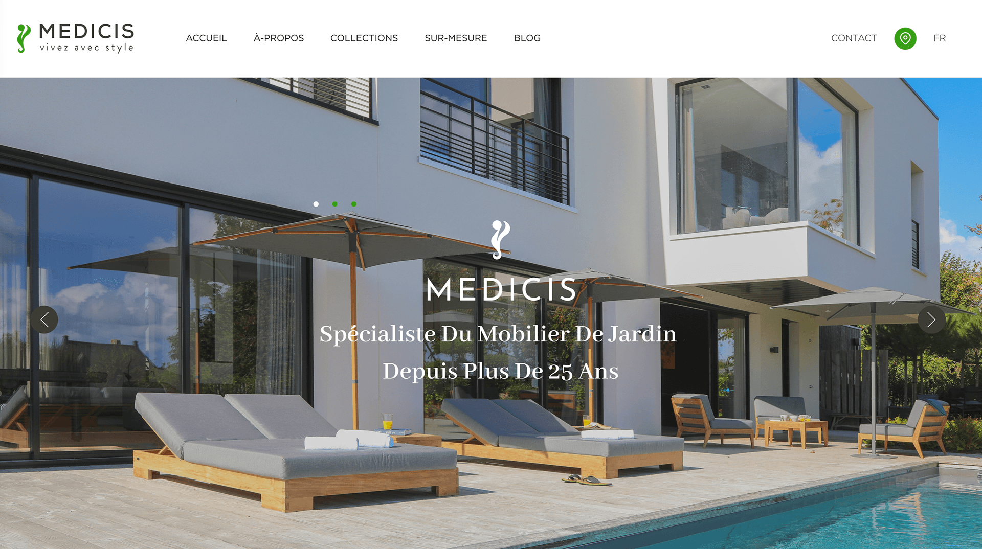 Refonte du logotype et création de l'UX/UI Design pour le site web du concepteur de mobilier d'extérieur Medicis.